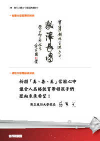 38cᘒʠʃኪʞɤϋࣧᅅत̊ • 台南大學黃宗顯校長 祈願「真、善、美」常駐心中 • 成功大學蘇慧貞校長 讓全人品格教育帶領孩子們 祈願「真、善、美」常駐心中 迎向未來希望! 讓全人品格教育帶領孩子們 迎向未來希望! 國立成功大學校長 國立成功大學校長 各界祝賀詞