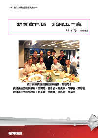 46cᘒʠʃኪʞɤϋࣧᅅत̊ 薪傳寶仁情 飛躍五十慶 邱平裕 名譽會長 寶仁校長與歷任名譽會長餐敘(敬稱略) 後排由左至右依序為:王亮雄、高永倫、曾俊欽、邱平裕、王澤瑜 前排由左至右依序為:趙文元、蔡國華、陳世庸、陳佑昇 各界祝賀詞