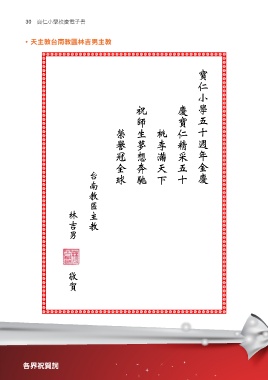 30cᘒʠʃኪ校慶電子書 • 天主教台南教區林吉男主教 寶 仁 小 學 祝 慶 師 寶 五 生 桃 仁 十 榮 譽 夢 李 精 週 冠 想 滿 采 年 全 奔 天 五 金 台 球 馳 下 十 慶 南 教 區 林 主 吉 教 男 敬 賀 各界祝賀詞